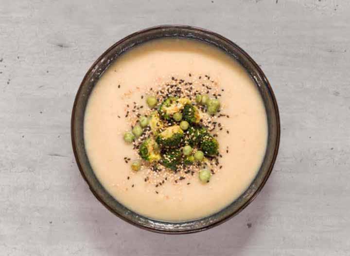 - Dodamo cvete brokolija, čičeriko in sezamova semena.